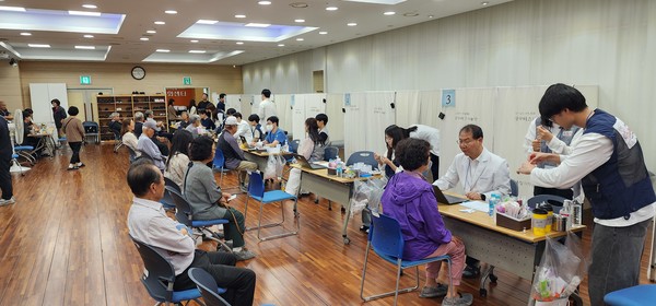 ¿ÀÀü 9½Ã 30ºÐºÎÅÍ ¿ÀÈÄ 4½Ã 30ºÐ±îÁö ÁøÇàµÈ Áø·á¿¡´Â ¾à 180¿© ¸íÀÇ Ãà»ê³ó°¡ ¹× ÁֹεéÀÌ Âü¿©ÇØ ÇѹæÁø·á¿Í °Ç° »ó´ãÀ» ¹Þ¾Ò´Ù.